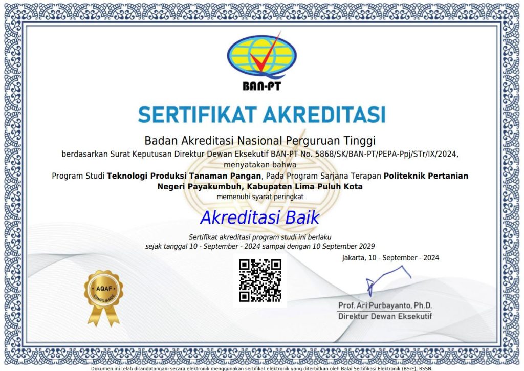 Program studi Teknologi Produksi Tanaman Pangan merupakan salah satu program studi di Politeknik Pertanian Negeri Payakumbuh yang menyelenggarakan pendidikan tinggi jalur vokasional dibidang tanaman pangan dalam program pendidikan Sarjana Terapan dengan
